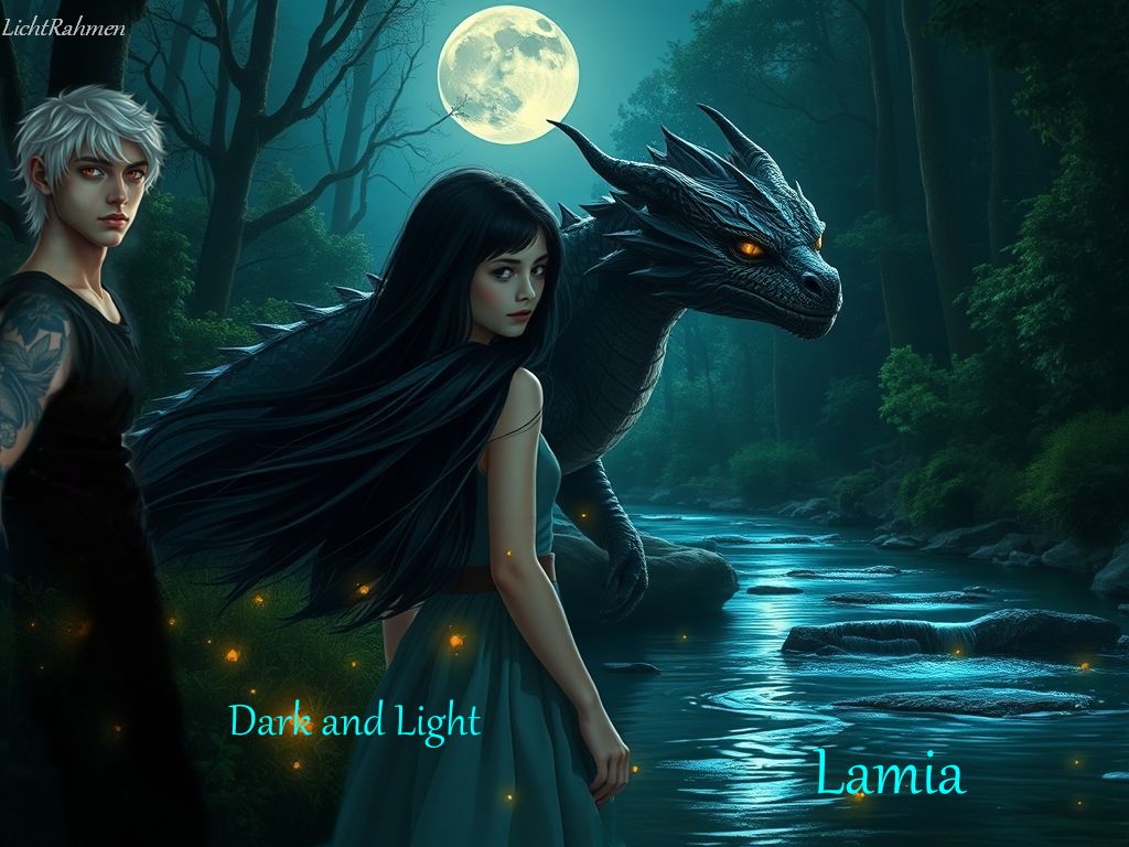 Fantasy-Geschichte von Licht Rahmen ‘Dark and Light- Lamia’ auf Deutsch. Mitglieder und Besucher dieser Internetseite können die Fantasy-Geschichte unter der Kategorie Fantasy stories and lyric posts lesen. Story-Cover mit KI erstellt und bearbeitet von Licht Rahmen. Altersempfehlung 14+